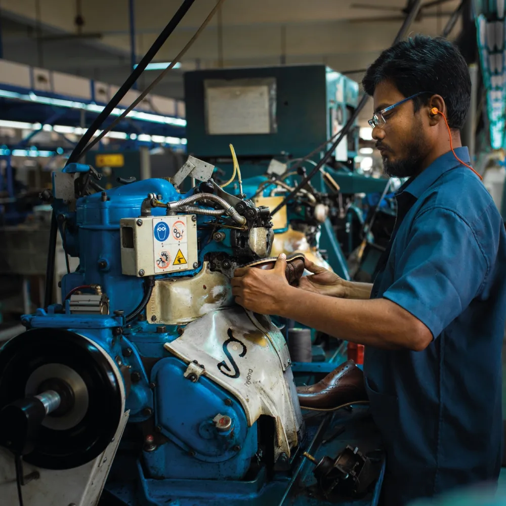 The art of shoemaking is the fine balance of three qualities – how it looks, how it feels and how long it lasts. We feel the only way to achieve this is by producing our own materials, to ensure only the best goes into the making of our shoes. Our tanneries produce the finest leather, while our factories make the uppers and soles with meticulous care. It leaves us no room for crafting anything less than the perfect.