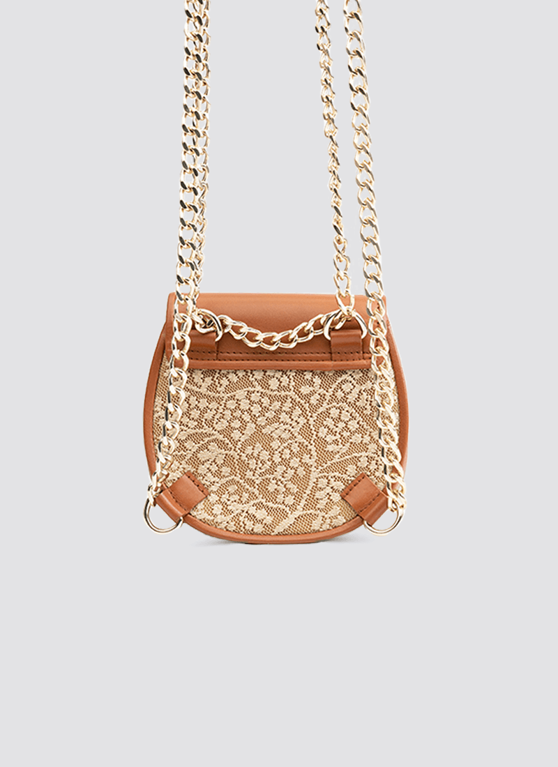 Add to CartAmp up your style with the Lacey backpack! Featuring a trendy lace fabric and chain sling, this backpack is perfect for adding an extra touch of attitude to any casual look.
