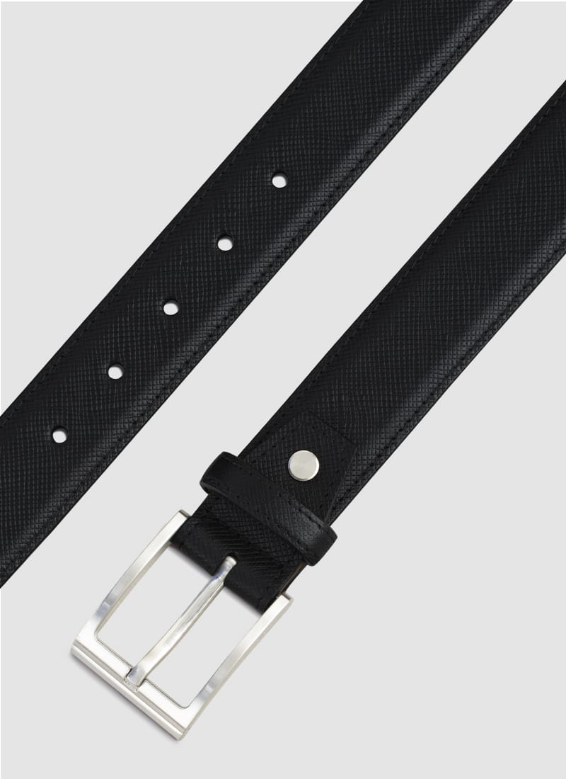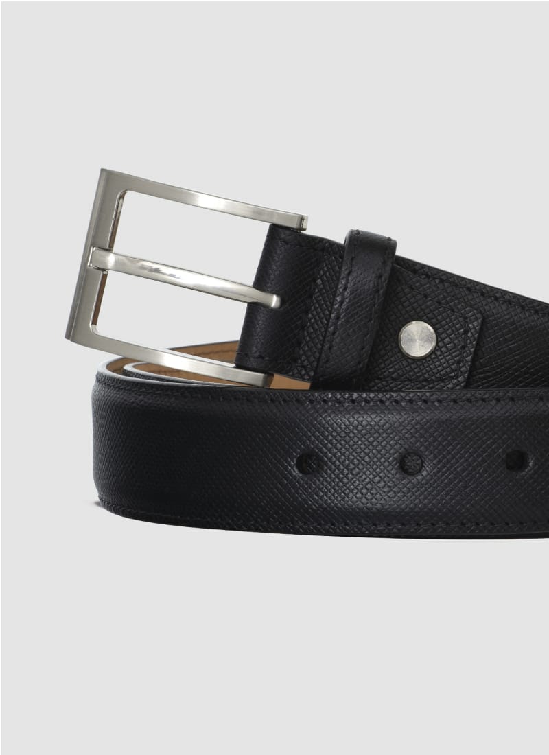 Add to CartCrafted in impeccably detailed premium leather, this modern belt features a brushed nickel buckle and a tone-on-tone metal stud. It is an urban essential that exudes style while providing all-day comfort.