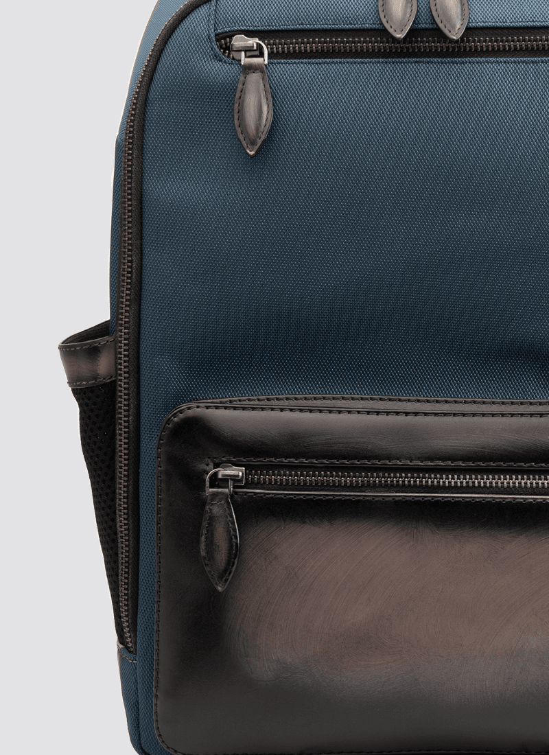 The Sion backpack is an exquisite hand-painted bag designed for the discerning gentlemen. Crafted to accommodate laptops of up to 15 inches, the backpack features a combination of top-quality polyester and leather. Durable, versatile, and stylish, this backpack is perfect for your everyday style.