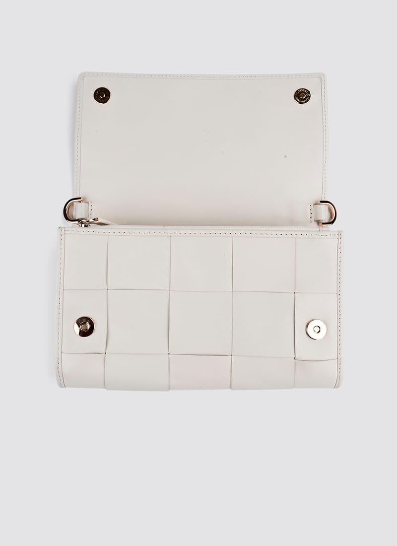 A tapestry that is uniquely classy and functional. With a gold finish hardware and cotton drill lining, this one is a keeper for all occasions. Hold it as a clutch or let it gently hang, the premium leather will shine.